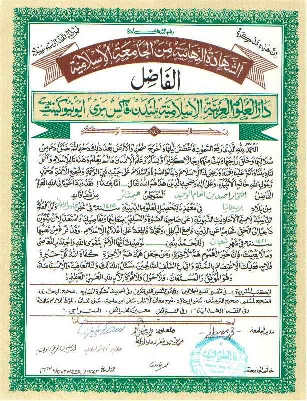 Certificate of